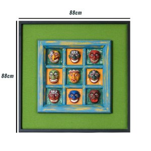 Half of a complete series of 18 Demonic masks, the set consists of 9 enchanting masks of the Demon Series (Daha Ata sanniya). Frame Size - 88cm×88cm. Size of a single mask (Approx.) - 10cm×10cm.